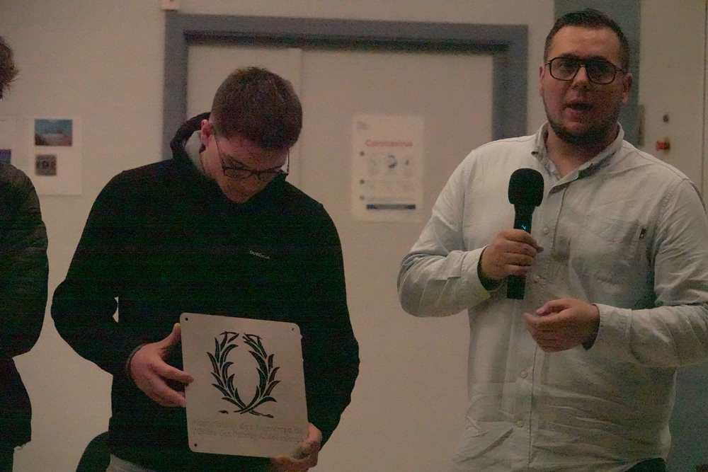 Notre section avait la volonté de mettre en avant les enseignements techniques proposés au sein du lycée Luxembourg et Christian Dautriche, son président, a souhaité présenter à l’assistance, les élèves de la classe de chaudronnerie et son professeur de technologie, Monsieur Marc Ballandier qui ont réalisé une palme funéraire en tôle, découpée au laser. Le résultat est de grande qualité et pourra à la demande, être remis aux familles lors du décès d’un ami Amopalien.